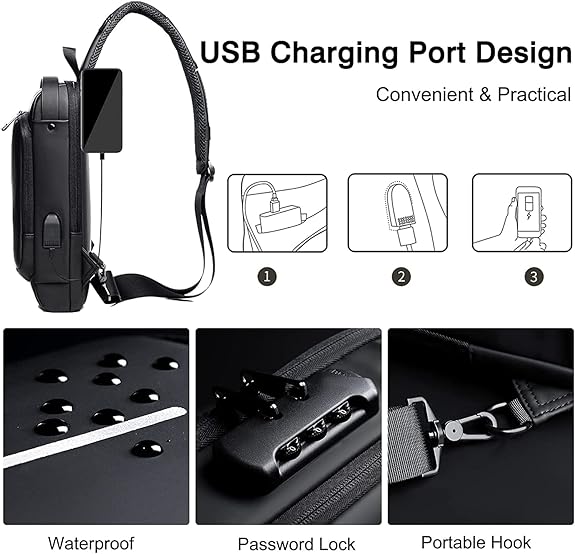 • 【USB Charging Sport Sling Anti-Theft Shoulder Bag】- This Men’s Women’s crossbody sling backpack comes with a usb charging port(power bank not included), for charging electronic devices via connecting your own power bank. You can charge your devices hands-free on the go at anywhere and anytime during walking, gym, sport, hiking, cycling, travel, outdoor activities and daily use.